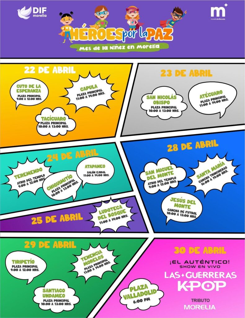 En Morelia se llevará a cabo el programa “Héroes por la Paz”, una serie de actividades que se desarrollarán en el municipio en el marco del Mes de la Niñez.